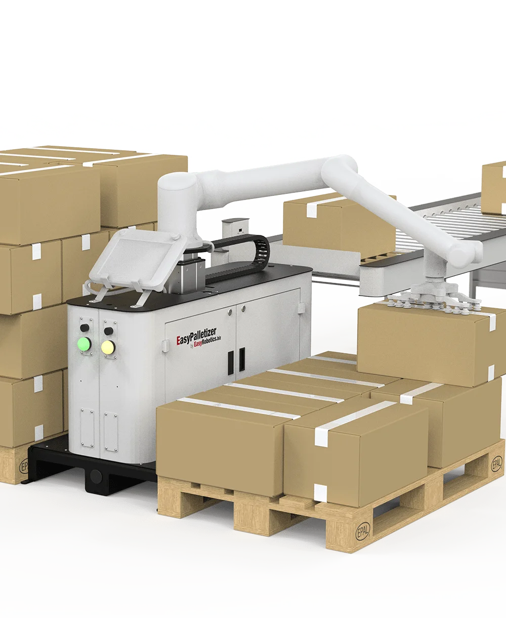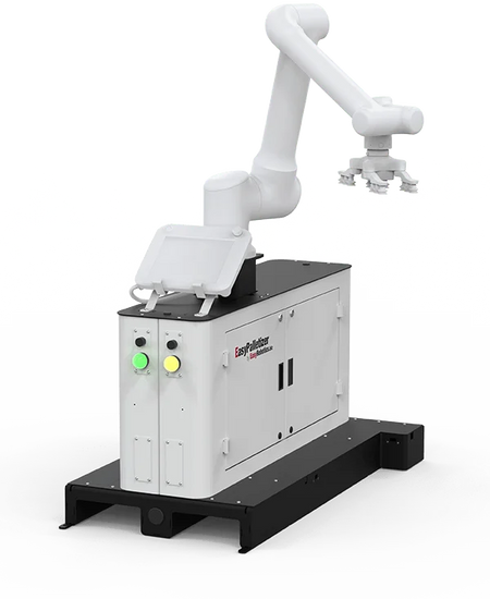 Der EasyPalletizer von EasyRobotics ist ein kompakter und mobiler Palettierer, der speziell entwickelt wurde, um das Palettieren in Produktionsumgebungen zu vereinfachen und zu optimieren. Basierend auf dem bewährten, industriellen Design, das alle EasyRobotics-Produkte auszeichnet, bietet der EasyPalletizer eine stabile und robuste Lösung für effizientes Palettieren.