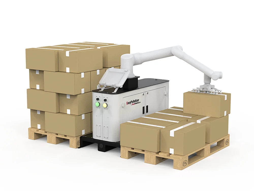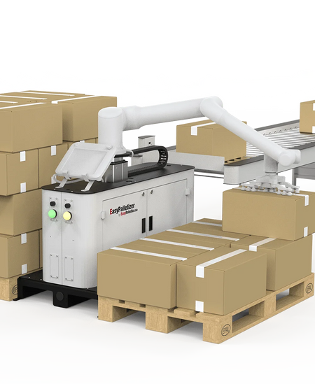 Der EasyPalletizer von EasyRobotics automatisiert den Palettierungsprozess. Durch seine kompakte Bauweise, hohe Mobilität und flexible Einsatzmöglichkeiten ist er eine unverzichtbare Lösung für moderne Verpackungs- und Produktionslinien.